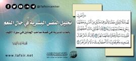 قصَّ اللهُ تعالى قصص القرآن لتكون عبرة لأولي الألباب، وهذه المقالة تتناول قصة صاحب الجنتين الواردة في سورة الكهف، وتسلّط الضوء على ما تناولته القصة من أحوال النفس البشرية في حال النعم، مع بيان سبل علاج الآفات النفسية العارضة في هذه الحال كما بيّنتها القصة.