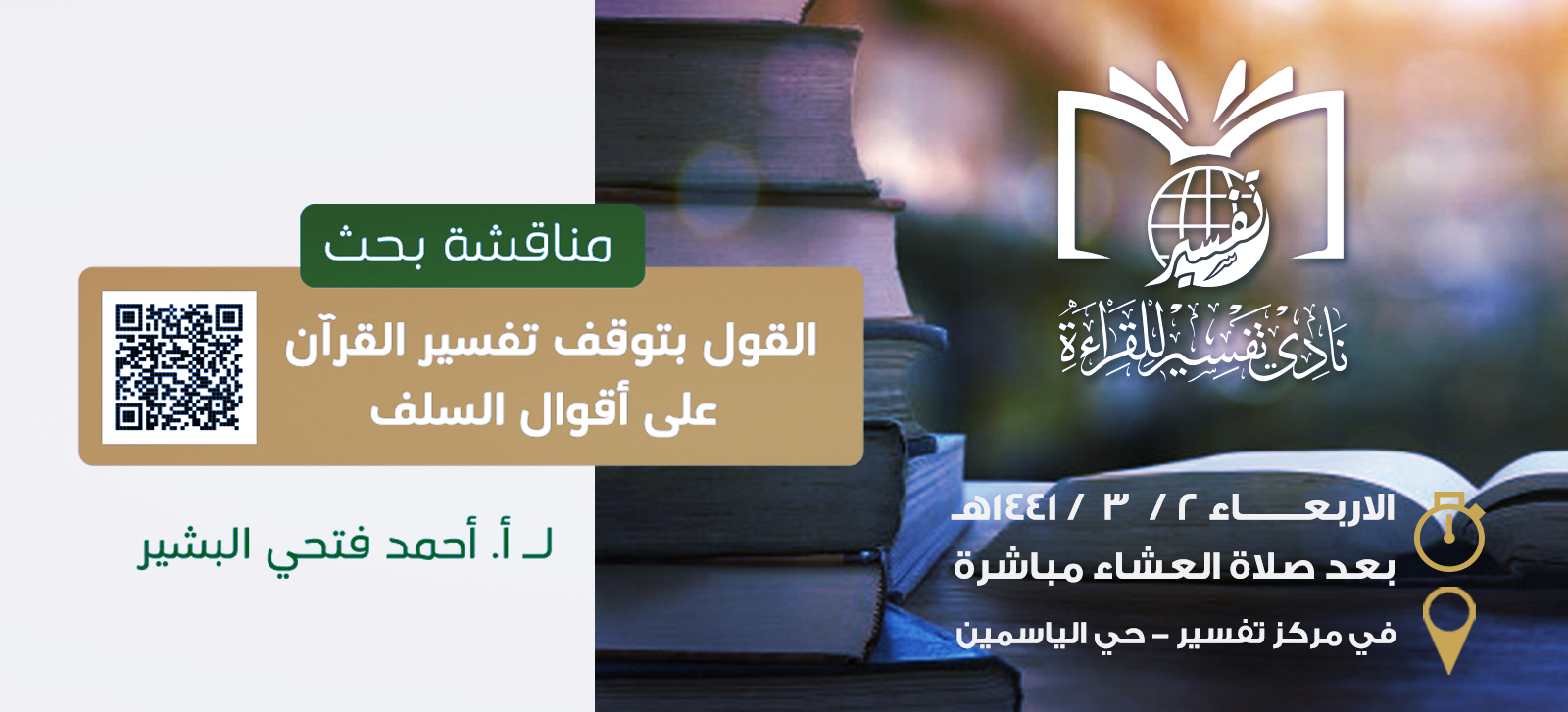 يسر نادي تفسير للقراءة أن يدعوكم لمناقشة بحث: