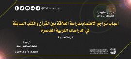 دراسة العلاقة بين القرآن والكتب السابقة، هو أحد الاهتمامات المركزية للدراسات الغربية للقرآن منذ نشأتها، وقد خضع هذا الاهتمام لعدد من التحولات منذ الحرب العالمية الثانية، يحلل ديفين ستيوارت في هذه الدراسة طبيعة هذه التحولات، وأسباب ما يعتبره تراجعًا في الاهتمام بهذه المساحة في النصف الثاني من القرن العشرين.