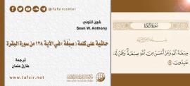 يهتم الكثير من الدارسين الغربيين المعاصرين بمحاولة فهم بعض الاصطلاحات والتعبيرات القرآنية كجزء من النقاشات الدينية في الشرق الأدنى القديم المتأخر، في هذه المقالة يحاول شون أنتوني قراءة كلمة (صِبغَة) في الآية 138 من سورة البقرة ضمن الجدالات المسيحية اليهودية حول معنى الصبغ ودلالة العماد وعلاقته بمفهوم المِلَّة والدين.