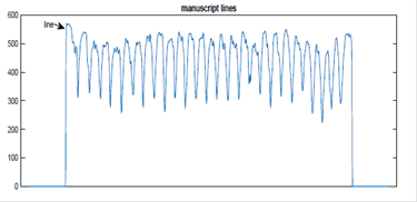 ] لبيان مضي عشر آيات، وهو ما يعرف بالتعشير. ويلاحظ انتظام الأسطر وترك فراغ بين الكلمات مما يدلّل على عناية الناسخ بصَفّ الكلمات، وقد أثبت الرسم البياني (histogram) التناغم والتساوي بين الأسطر [الشكل 1][3].