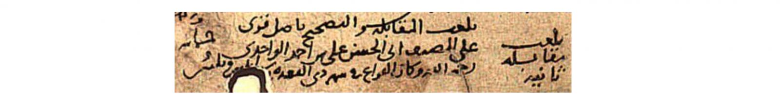«بلغت المقابلة والتصحيح بأصلٍ قُرِئ على المصنِّف أبي الحسن عليّ بن أحمد الواحدي رحمه الله وكان الفراغ في شهر ذي القعدة سنة إحدى وثلاثين وخمسمائة والحمد لله وحده».