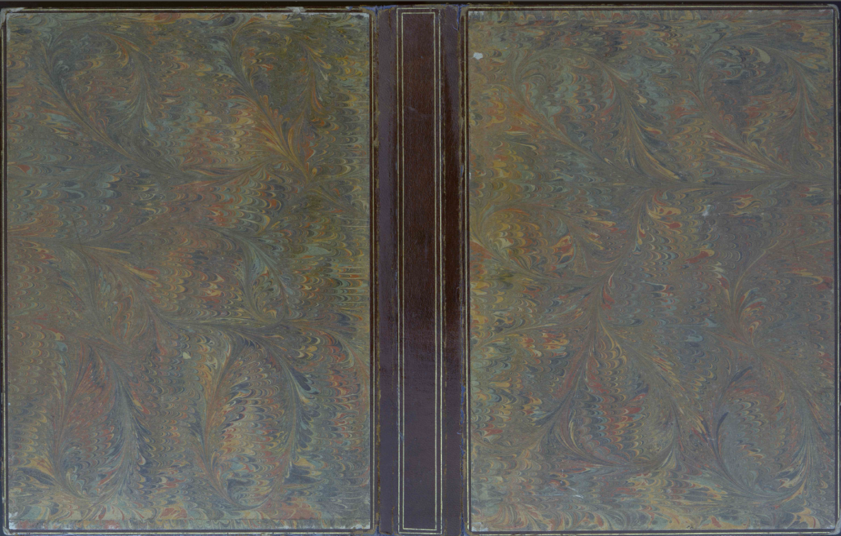 جُلِّدت النسخة بتجليدٍ من الجِلْد الملوَّن باللون البُنِّي، محفوف بإطار ذهبي من جوانبه وكعبه، ومرسوم عليه أشكال مموَّهة بالنبات متداخلة فيما بينها يظهر منها ألوان مختلفة كالأحمر والذهب والخُضرة، ثم على بطانته لوحتان من القماش يحيط بهما إطارٌ من الذهب ذو ثلاث طبقات، مزخرفتان بأشكال بديعة من النبات الذي توزّعَت صوره على شكل أرضية فاتحة اللون عليها أوراق خضراء، وفي منتصفها مزركشات ملونة بالخُضرة والحُمرة والذهب بأشكال منحنية تطوِّقها الأزهار والعروق النباتية.