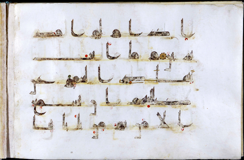 ولكن إذا أمعنّا النظر في خطّها نجده من الكوفي القديم المنقّط بعلامات أبي الأسود الدؤلي المتوفى سنة 69هـ، والمعجم بعلامات نصر بن عاصم الليثي المتوفى 91هـ. ولم تظهر عليه حركات الفراهيدي المتوفى 170هـ. وهو وإن لم يكن دليلًا واضحًا على كتابتها قبل الفراهيدي إلا أنها من مكتوبات القرن الثالث أو الرابع على أبعد تقدير.