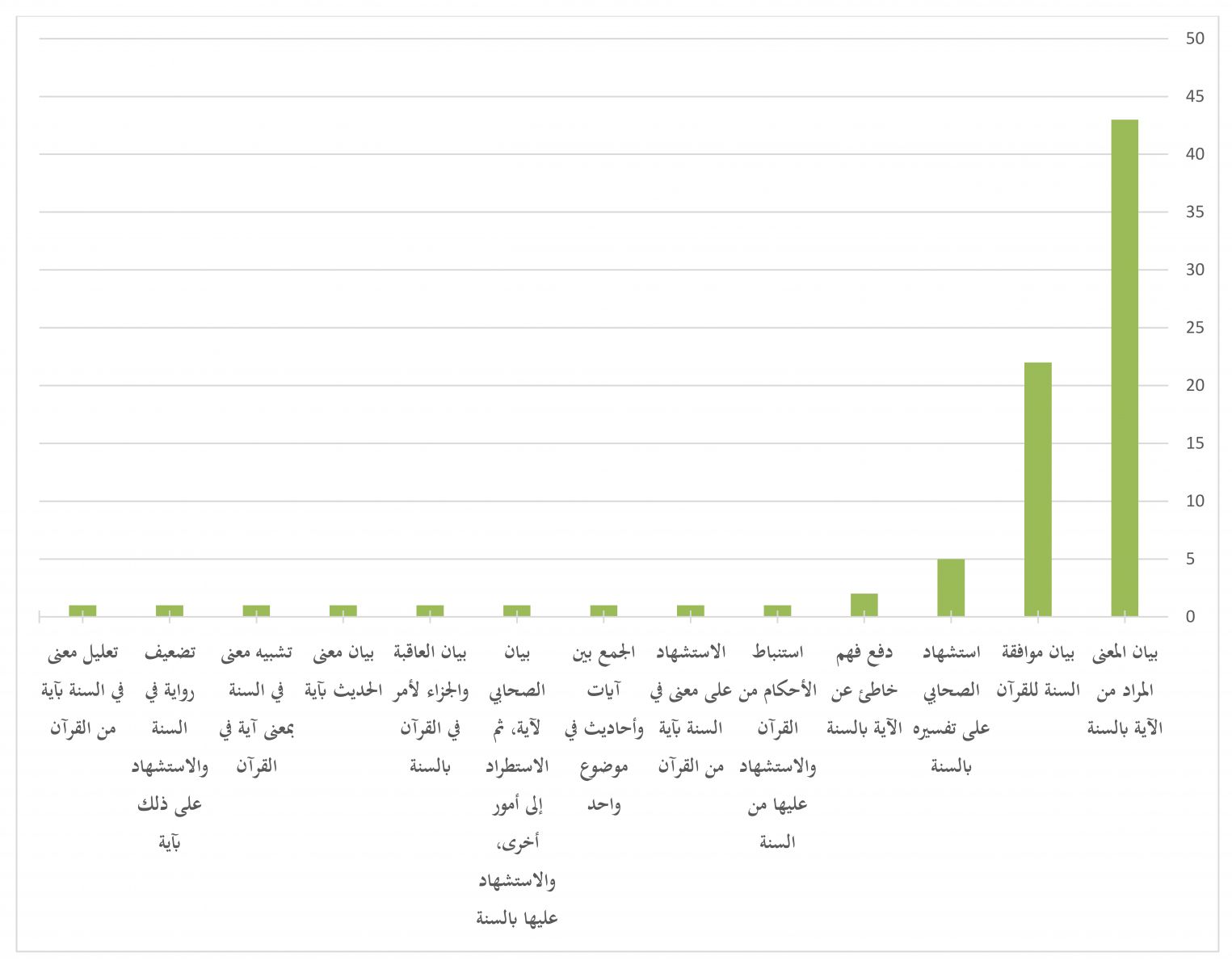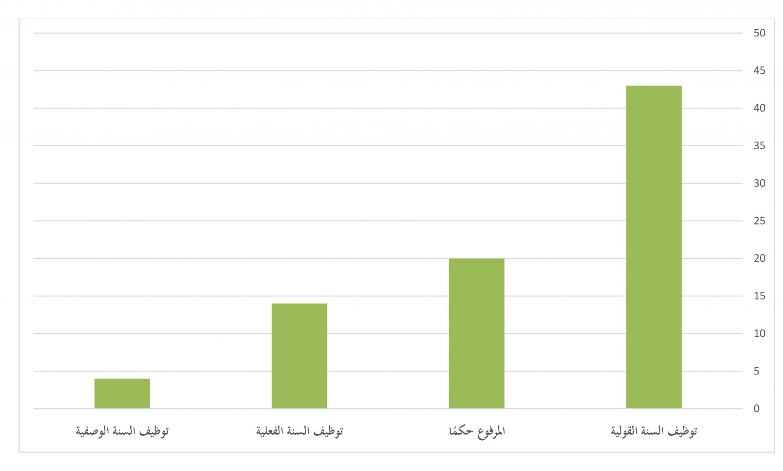 والرسم الآتي يوضح مقدار أوجه توظيف الصحابة للسنّة في التفسير بالنظر لجميع المرويات الواردة في ذلك: