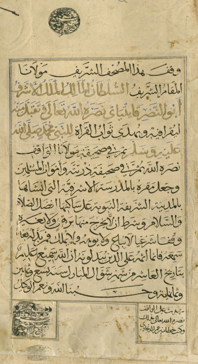 نصّ وقفية مصحف الأشرف قايتباي على المدرسة الأشرفية بالمدينة النبوية: