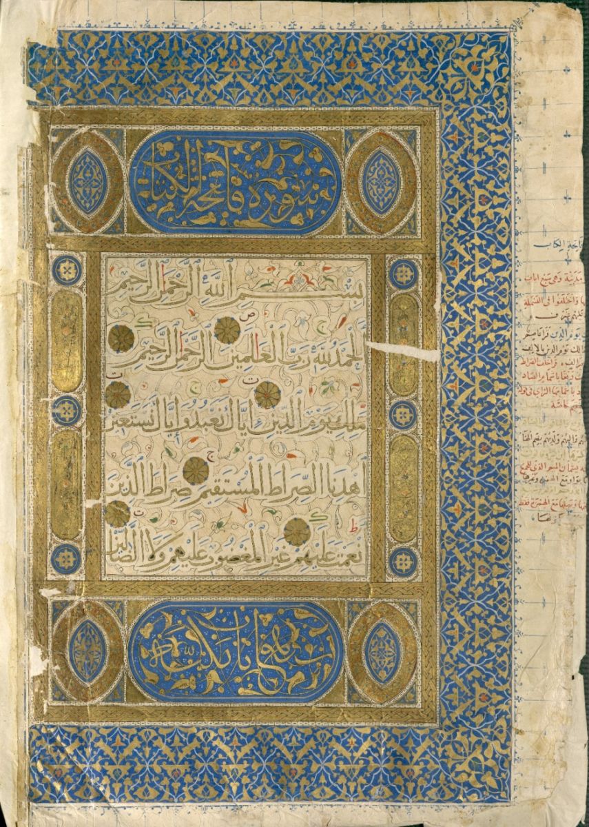 ظهر الورقة الأولى من مصحف الأشرف قايتباي المُوقف على المدرسة الأشرفية بالمدينة النبوية