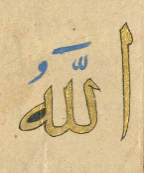 وكُتب لفظ الجلالة (الله) في كلّ موضع من المصحف بماء الذهب، محدّد باللون الأسود، وضبط شكله باللون الأزرق تارة وبالأحمر تارة.