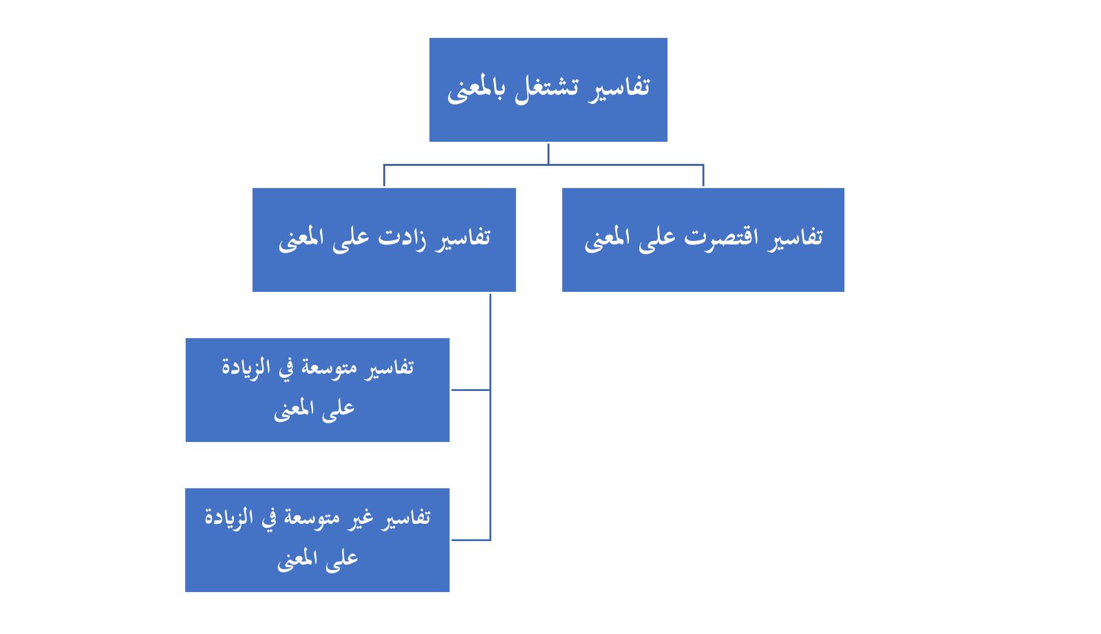كما يمكن تطوير التصنيف من خلال إضافة مستويات أخرى للتحليل تتجاوز مجرّد العلاقة بالمعنى؛ فمثلًا، يمكن إضافة مستوى يتعلّق بالمنهجية المتّبعة في التعامل مع المعنى التفسيري: هل هي منهجية تحليلية أم تركيبية؟ هل تعتمد على التحليل اللغوي أم على النظر في السياق والمقاصد؟ هذا التوسّع في مستويات التحليل سيُثري التصنيف ويجعله أكثر قدرةً على فهم طبيعة المدوّنة التفسيرية.