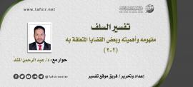 يمثِّل تفسير السلف ثروة تفسيرية كبيرة، وهذا الحوار مع د/ المشدّ يدور حول عدد من القضايا المهمّة حول تفسير السلف، ويأتي الجزءُ الأول منه حول المفهوم، وأبرز أسباب الأهمية، ومناقشة عدّة مسائل جدلية حول تفسير السلف.