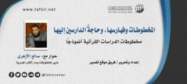 لا شك أنّ رجوع الباحث للمخطوطات والتعامل مع فهارسها أمرٌ لا غنى عنه في البيئة العلمية الجادّة، ويأتي هذا الحوار مع أ. صالح الأزهري لإلقاء الضوء على مخطوطات الدراسات القرآنية وجوانب الاستفادة منها، وبيان قيمة الاطلاع على فهارسها، ومعيار الحكم عليها، وغير ذلك من الأمور المهمة.