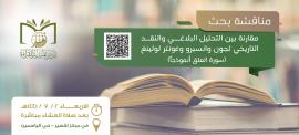 دعوة لمناقشة بحث "مقارنة بين التحليل البلاغي والنقد التاريخي لجون وانسبرو وغونتر لولينغ"