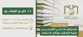 حول "موقف طلبة الدارسات العليا من ظاهرة التحريف المعاصر" كان موضوع اللقاء الـ٥٧ من لقاءات أهل التفسير، مستضيفًا فضيلة الدكتور فهد العجلان، وهذا تقرير موجز عن اللقاء.