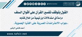 القول بتوقف تفسير القرآن على أقوال السلف؛ دراسة في استدلالات ابن تيمية من خلال كتابه «جواب الاعتراضات المصرية على الفتيا الحموية»